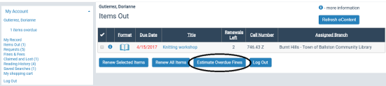 Polaris provides the ability to display an estimated fine amount (accrued fines) for overdue items a patron has currently checked out. You can opt to include claimed and/or lost items in the estimate calculation (system level only). The estimated fine amount information is available in the staff client, the PowerPAC and Mobile PAC patron account, and the Polaris ExpressCheck patron account.