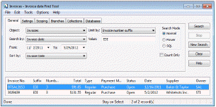 2. The Find Tool appears with Invoices selected in the Object box.