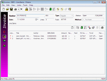 1. Select Acquisitions > Invoices from the Polaris Shortcut Bar.