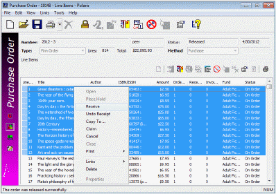 - Select the line items you want to receive, right-click, and select Receive from the context menu, or click
