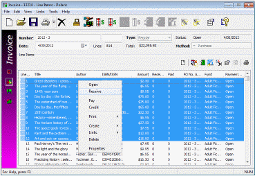 If you are receiving invoice lines, and no item records were generated when the purchase order was released, right-click the invoice line and select Create > Item Records from the context menu. If no errors are detected, the on-order item records are created.