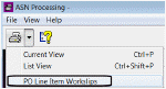After receiving on the Receive ASN Shipments workform, you can print purchase order line item workslips. If multiple copies of the same title are received in separate cartons, only one workslip is printed for the title. To print purchase order line item workslips from the Receive ASN Shipments workform, select File > Print > PO Line Item Workslips, or select the down arrow next to the printer icon, and select PO Line Item Workslips.