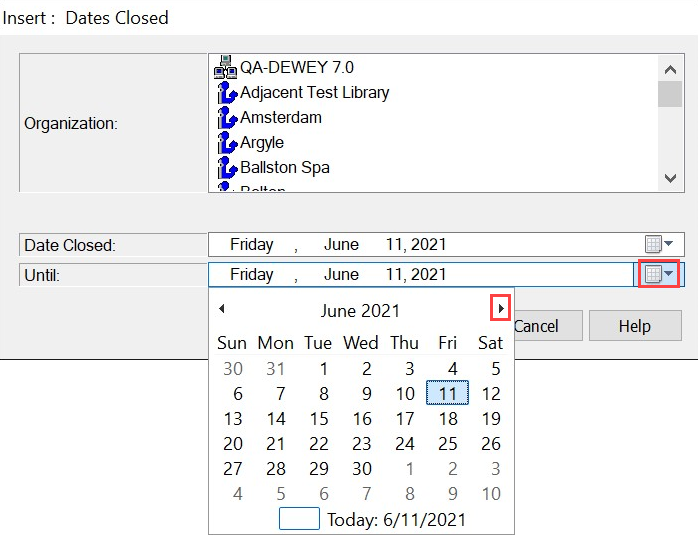If you are setting the dates closed for all member branches of a library, open the table at the library level. You can add the dates at the library level. All member branches inherit the same dates. In addition, at the library level, you can add or delete dates for specific member branches.Tip: