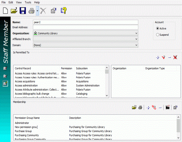 The Find Tool closes, and the permissions from the selected record are added to the Is Permitted To list for the target record. The existing permissions remain. Any duplicate permissions from the source record are not copied.