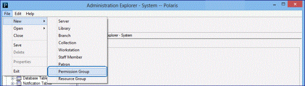1. Open the Administration Explorer, and select File > New > Permission Group from the Explorer menu bar.