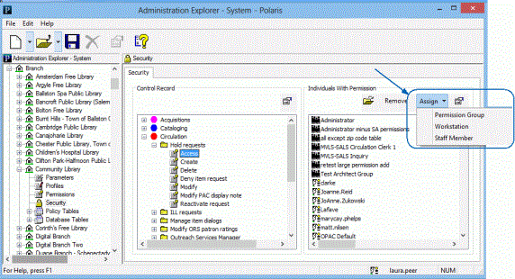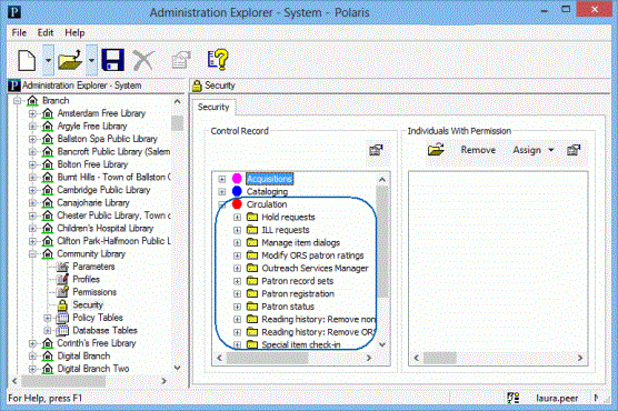 - From the Individuals with Permission list, select the permission groups, staff members, and workstations you want to remove. To select multiple items, press CTRL while you select the items.