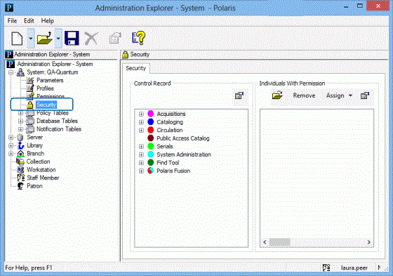 - If you changed the permission assignments, select File > Save to record the changes.