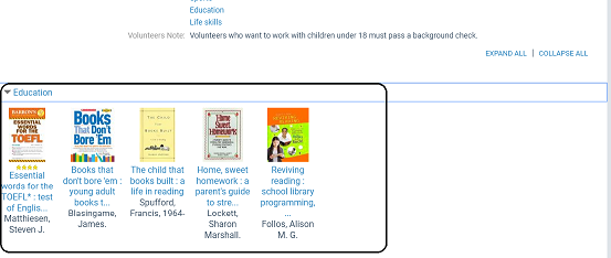 These entries are displayed as buttons in a Connect with us section for your organization in a patron’s search results.