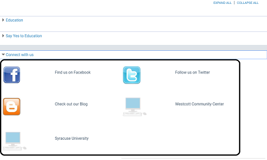 1. To provide a web link in the Connect with us section for your organization: