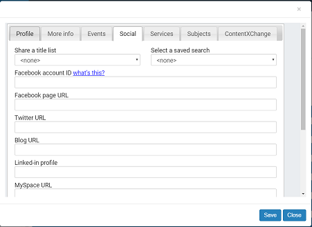 2. To show social media buttons with your information in a patron’s search results, enter the appropriate IDs or URLs in the following boxes: