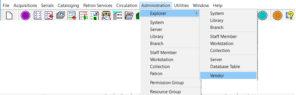 Vendor records and vendor accounts are accessed through the Polaris Administration Explorer; they cannot be accessed from the Find Tool. Polaris Administration ownership and inheritance do not apply to vendor records or vendor accounts.