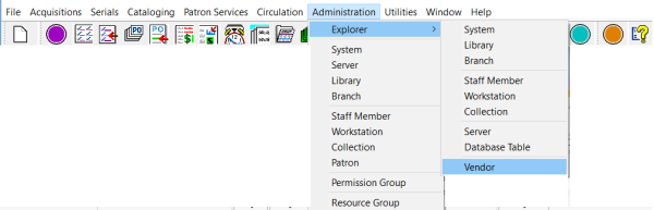 Vendor and Vendor account records are accessed through the Polaris Administration Explorer; they cannot be accessed from the Find Tool. Polaris Administration ownership and inheritance do not apply to vendor records or vendor accounts.