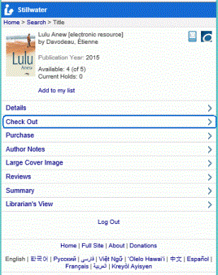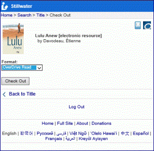 The patron selects the format in the Format drop-down list box and selects the Check Out button.