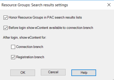 - To display search results according to the resource groups when displaying search results, select Honor Resource Groups in PAC search results lists.