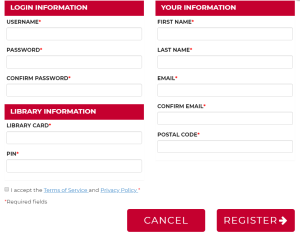 The patron fills out the form and clicks REGISTER to register with RBdigital. The patron is then able to check out or request RBdigital from the Polaris PAC.