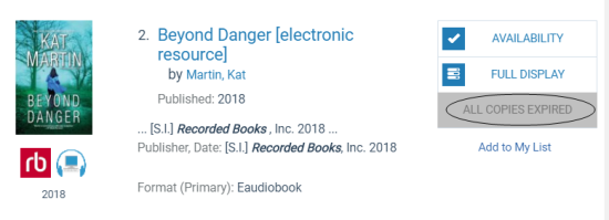 RBdigital titles appear in Polaris PowerPAC with the following buttons and banners next to the title:
