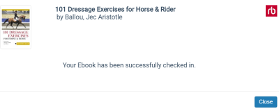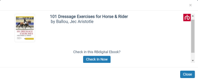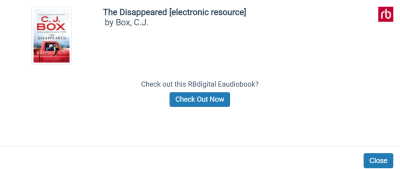 If the RBdigital title is available to the patron who is logged into the Polaris PowerPAC, the CHECK OUT button appears. When the patron clicks the CHECK OUT button, a confirmation message box appears.