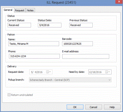 After the Polaris patron is notified that the ILL item requested through INN-Reach is ready for pickup, the patron goes to the pickup branch at which the item is held, and the item is checked out to the patron.