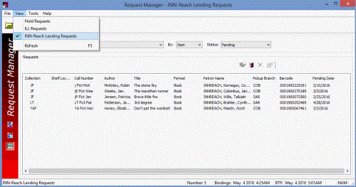 - Check the Request Manager for any INN-Reach holds to fill on the INN-Reach Lending Requests view.