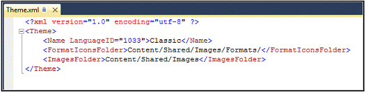 - Working in your Theme.xml file, change the Name node to the name of your new custom theme.