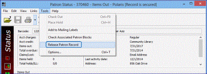 - Select File > Save. The patron record is released and a confirmation message appears. In addition, a Patron record released transaction is recorded.