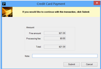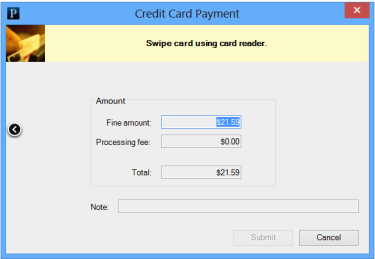 - Slide the patron's credit card through the card reader, and select Submit.