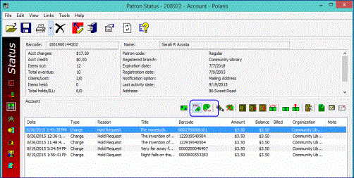 - Open the patron’s record in the Patron Status workform - Account view. See Access the account data for a patron record.