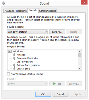 - Select Sound from the Windows Control Panel. The Sound dialog box appears.