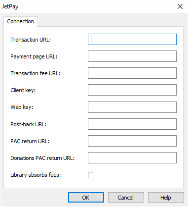 11. PAC return URL - Enter the URL that will be displayed when the user clicks the return link on the JetPay final payment transaction page. To use your library's PowerPAC patron account Fine & Fees page, use the format below:
