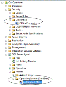 - Create the server credential and proxy that allow the Automated Offline SQL job to access the designated offline workstations and pull the transaction files from them: