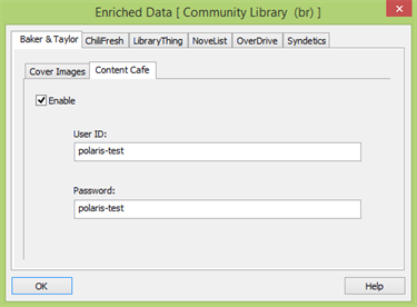 - Type your Content Cafe user ID and password in the appropriate boxes. These are the same settings you use for Baker & Taylor cover images. Contact your vendor to obtain these settings.