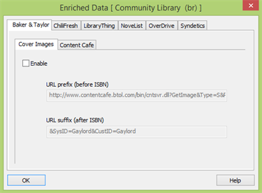 - If you receive cover images (book jackets) from Baker & Taylor, click the Cover Images tab. Then select Enable.