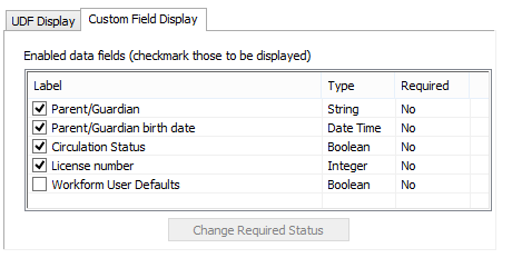 2. To indicate that a selected UDF is a required field, select the Required checkbox.