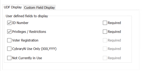 1. Select the UDF Display tab to display the available user-defined fields (UDFs).