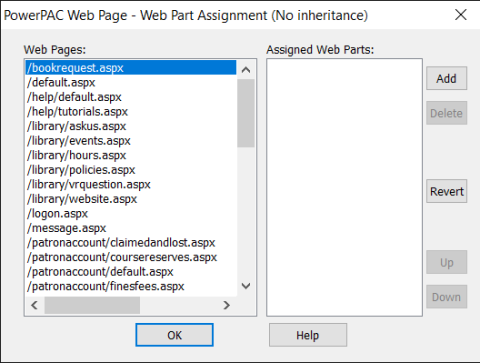 - If you are assigning web parts to Polaris PowerPAC pages, see Setting Public Access Profiles and Parameters for information about each page.