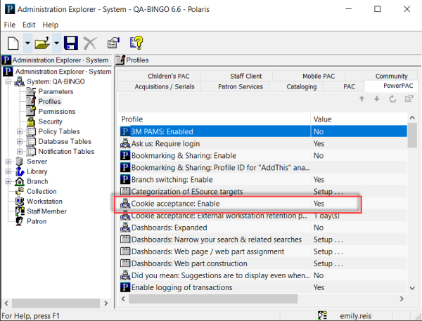 On the PowerPAC tab, set the Cookie acceptance: Enable profile to Yes.