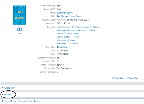The Map It drawer is displayed for any title in a results set whose # system items count in the PAC brief display is greater than 0. For more information about # system items, see Configuring the PowerPAC Title Display. The Map It button does not appear for any title whose # system items is 0, even when Google Maps is enabled for the connection organization.