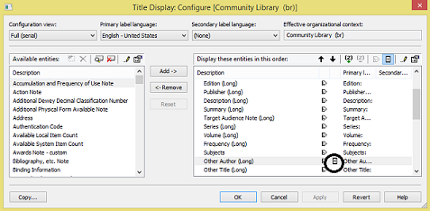 - Using the PowerPAC profile Title Display: Configure, set up bibliographic entities for display. See Select bibliographic entities for display and edit labels.