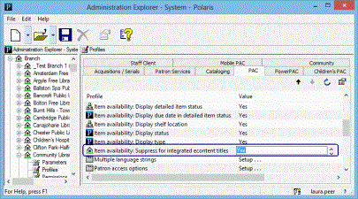 - Double-click Item availability: Suppress for integrated econtent titles, and select Yes.