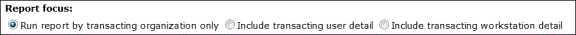 Tip: If you selected Run report by transacting organization only, the options to include user or workstation detail are unavailable.