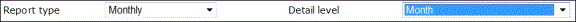 - Select the report type and detail level. When you select a report type, the list in the Detail level may display options for the type of report, or it may display Not applicable for this type of report.