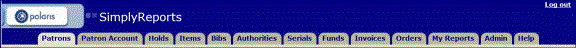 - History - If your library uses history reports, and you have permission to access the subtabs, the Patron history reports subtab appear under the Patron tab and the Item history reports tab appears under the Items tab. Customers who choose not to use these reports can ask their Polaris Site Managers to disable them. If the reports are disabled for a library system, these subtabs do not appear for any SimplyReports users.