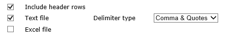 - Text - When you select Text, you can select the delimiter type: Comma and quote, Tab, Semi-colon, Colon, or Pipe.