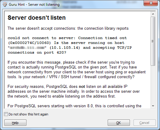 Error connecting to the server: FATAL: <resource> rejects connection for host "123.45.67.89", user "<Sierra user name>", database "postgres", ssl on FATAL: <resource> rejects connection for host "123.45.67.89", user "<Sierra user name>", database "postgres", ssl off